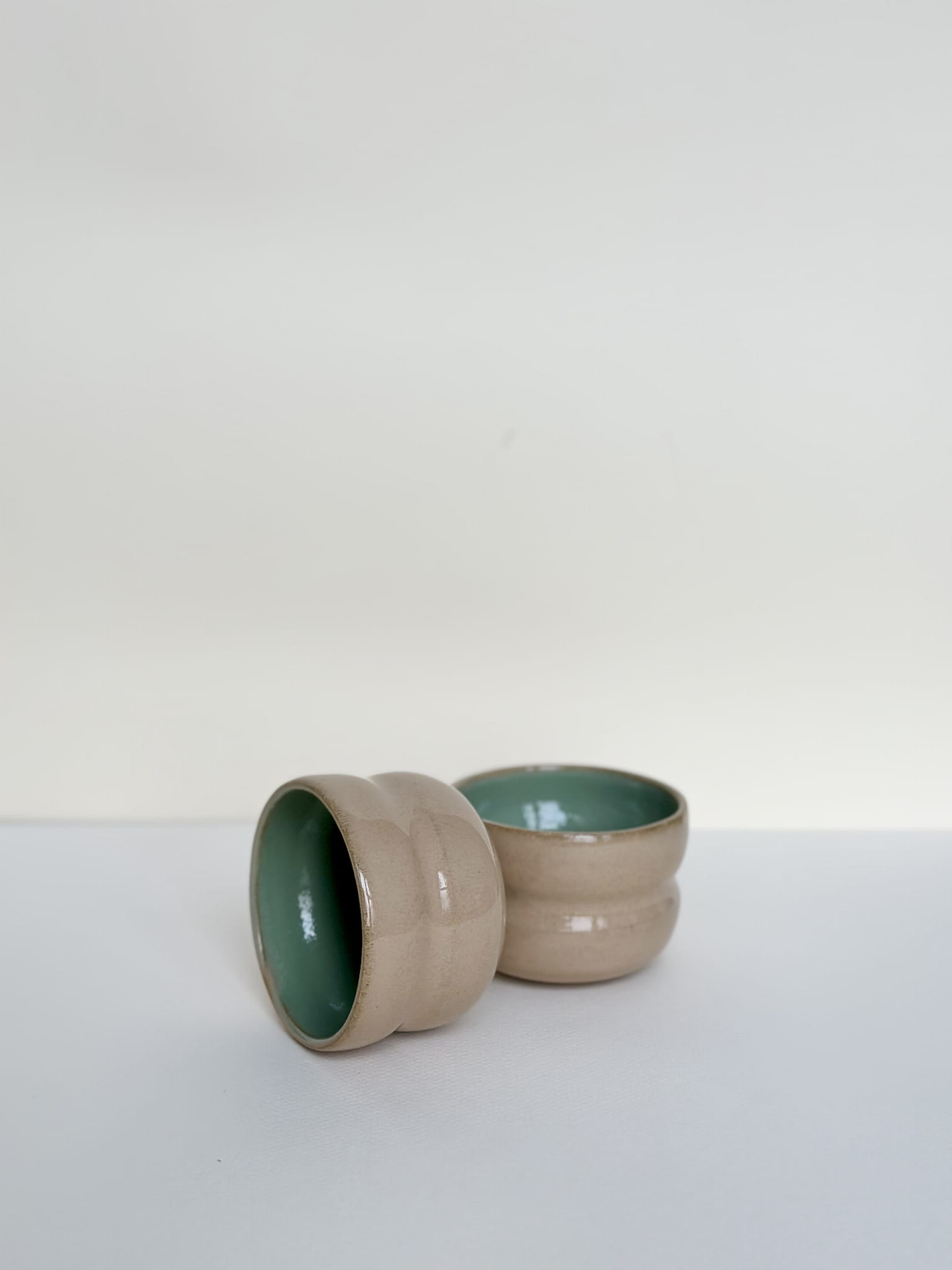 Kolor, faktura: piaskowy i szałwiowy; gładkie, błyszczące szkliwo