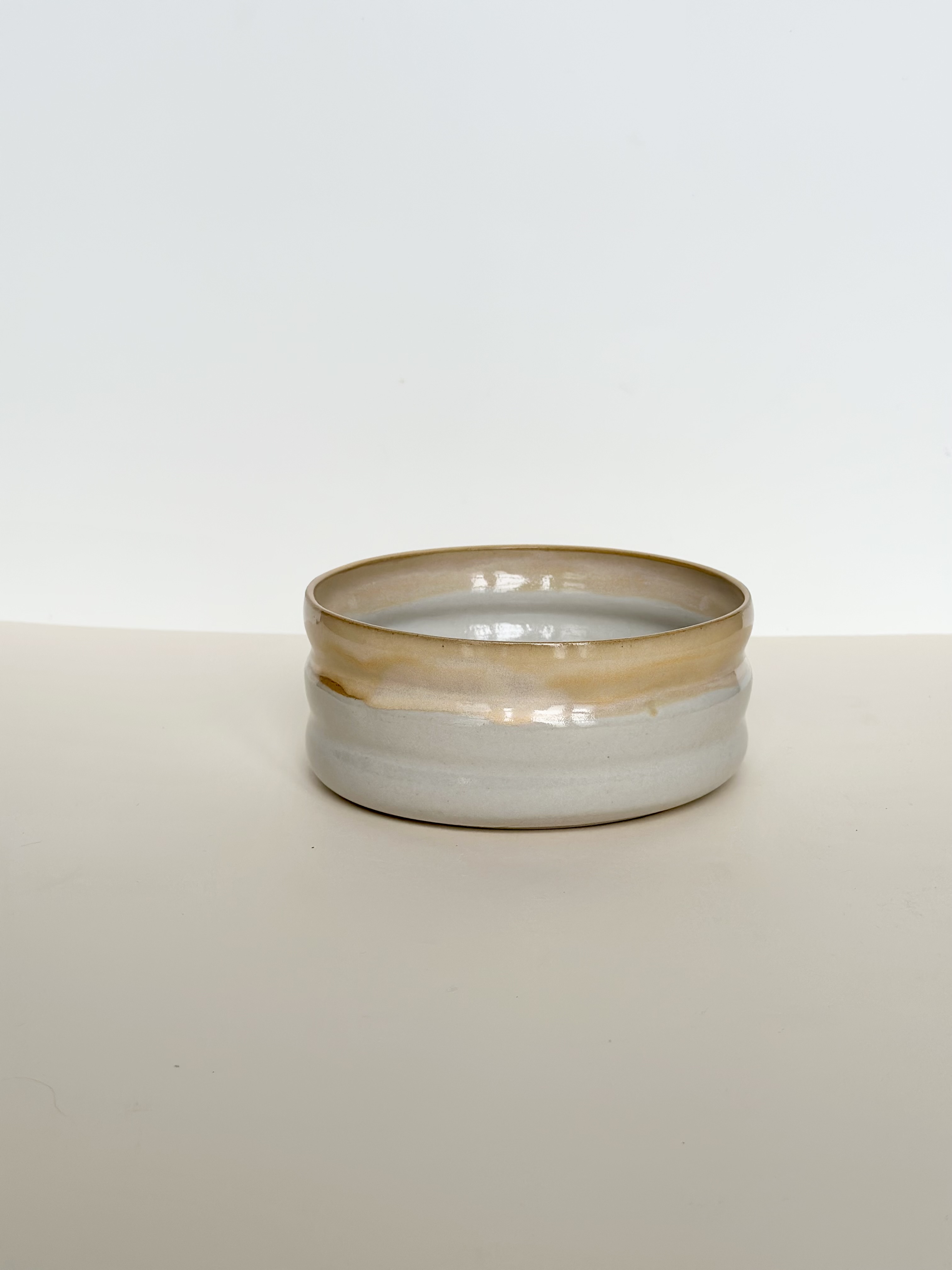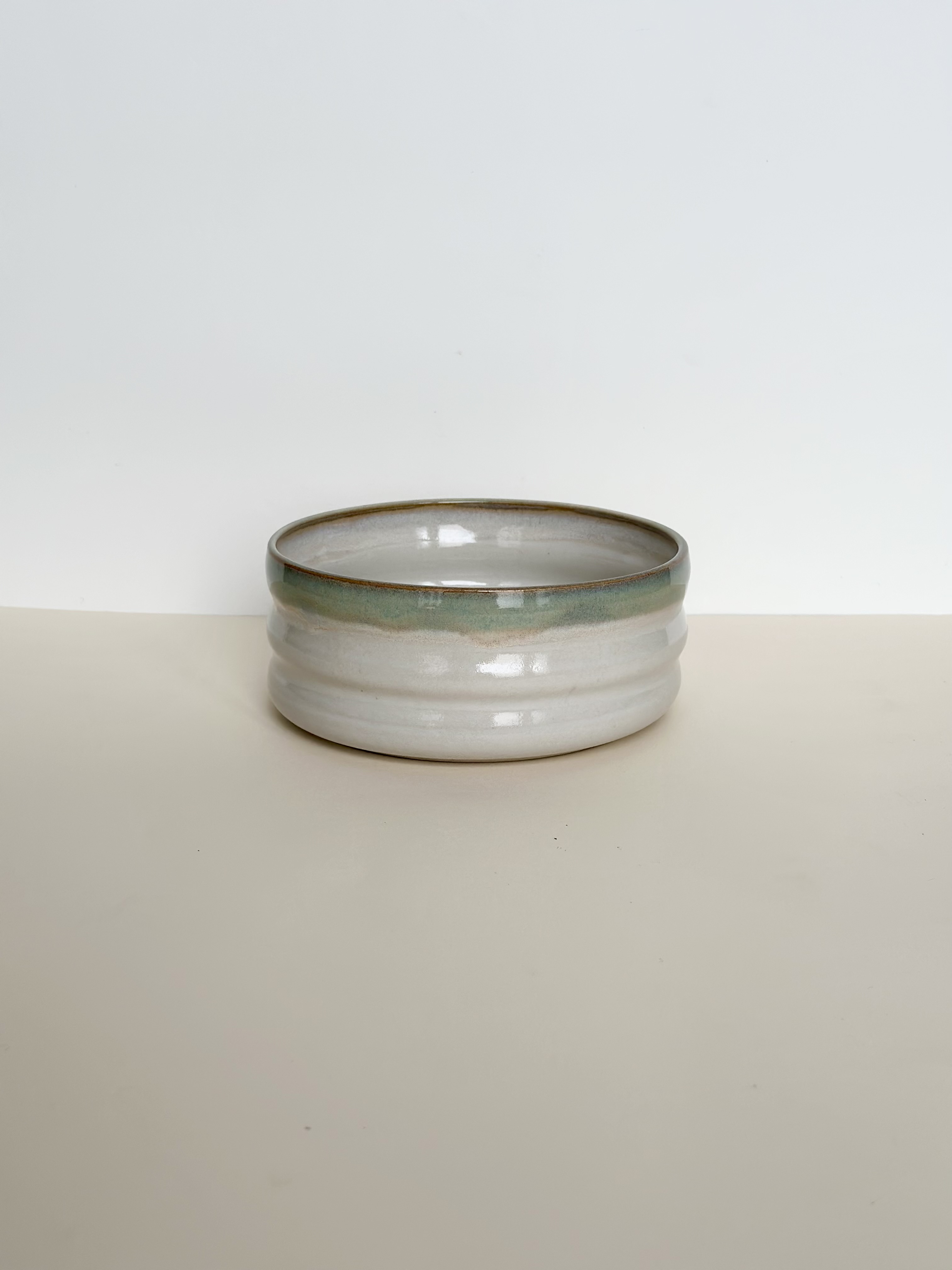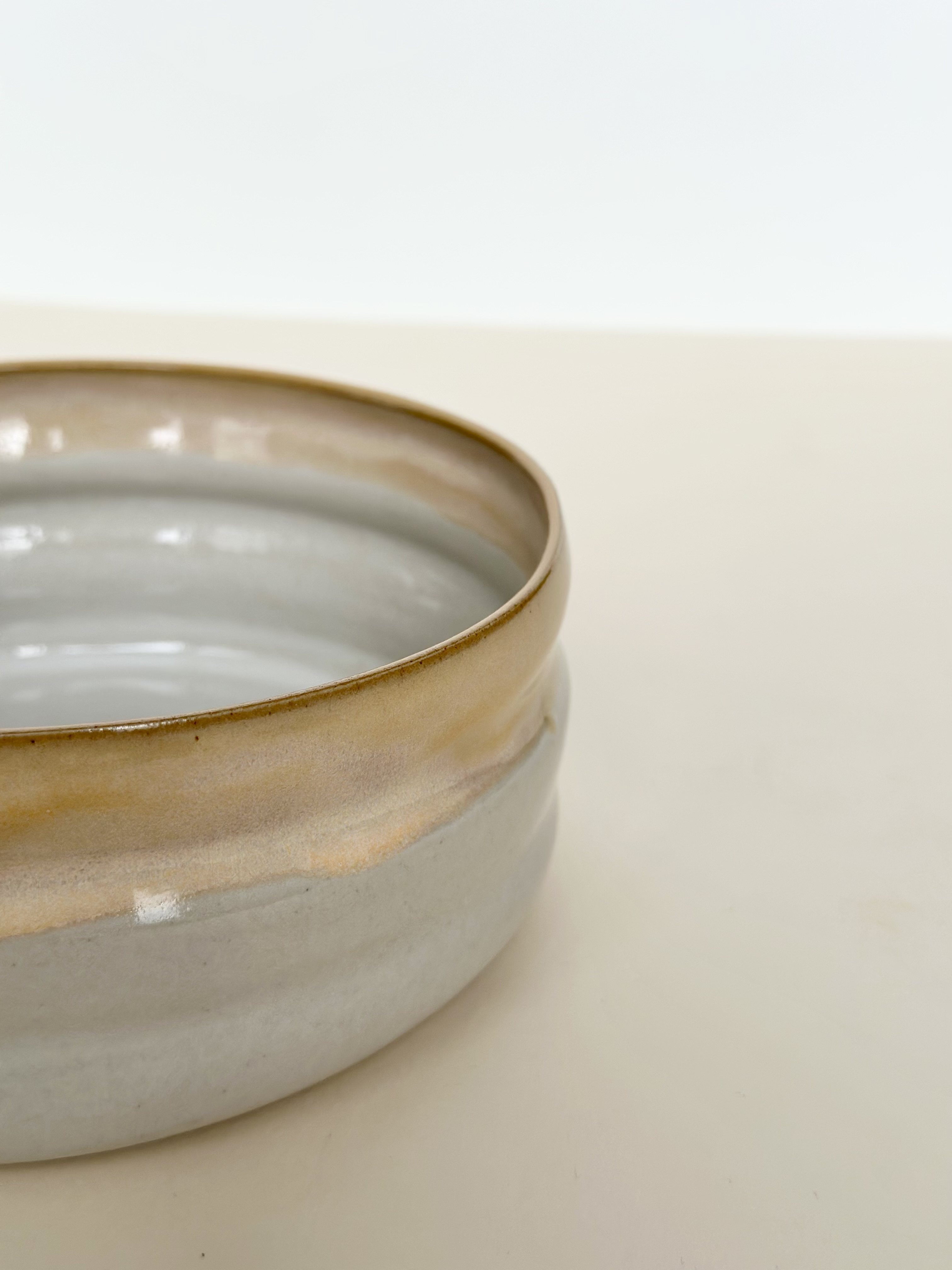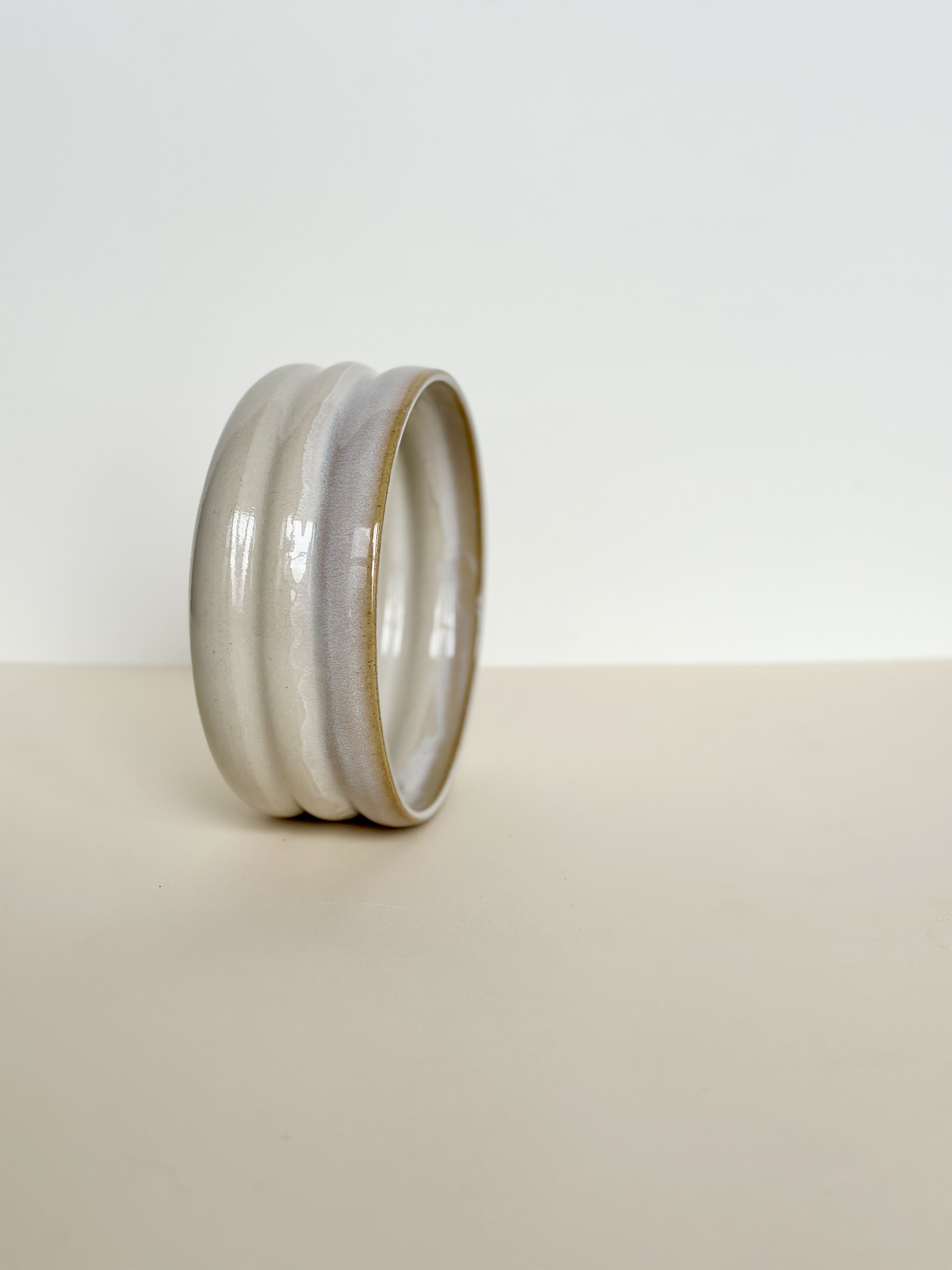 Miska o miękkiej, zaokrąglonej formie. Charakterystyczne „brzuszki” powstają podczas toczenia na kole i nadają naczyniu spokojny, rytmiczny kształt. Pomieści na prawdę sporo jedzenia, a jednocześnie pozostaje zgrabna w proporcjach.