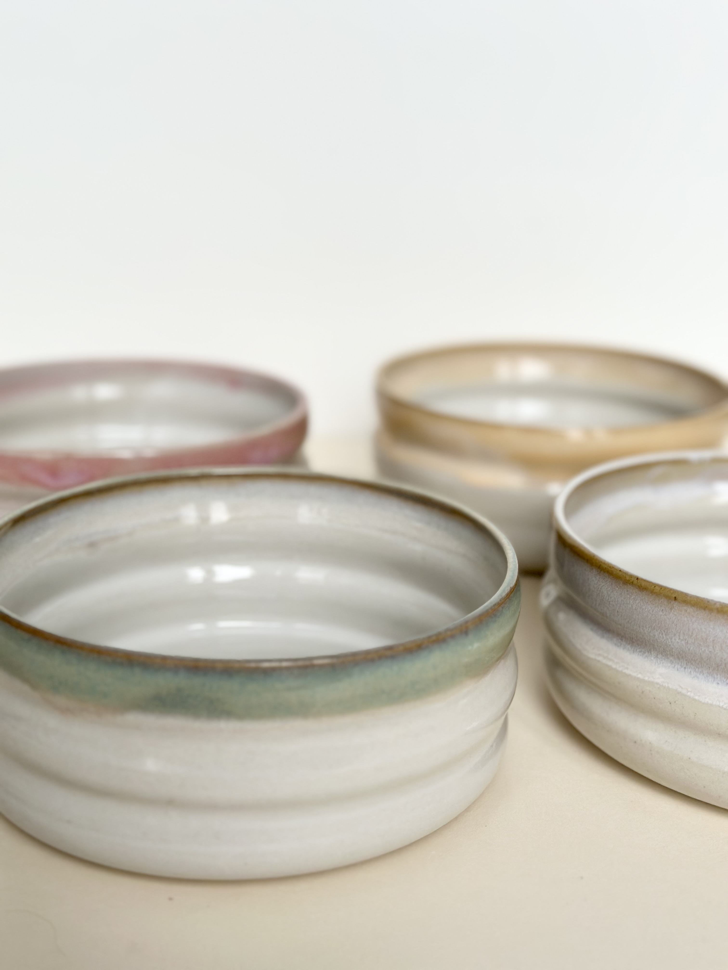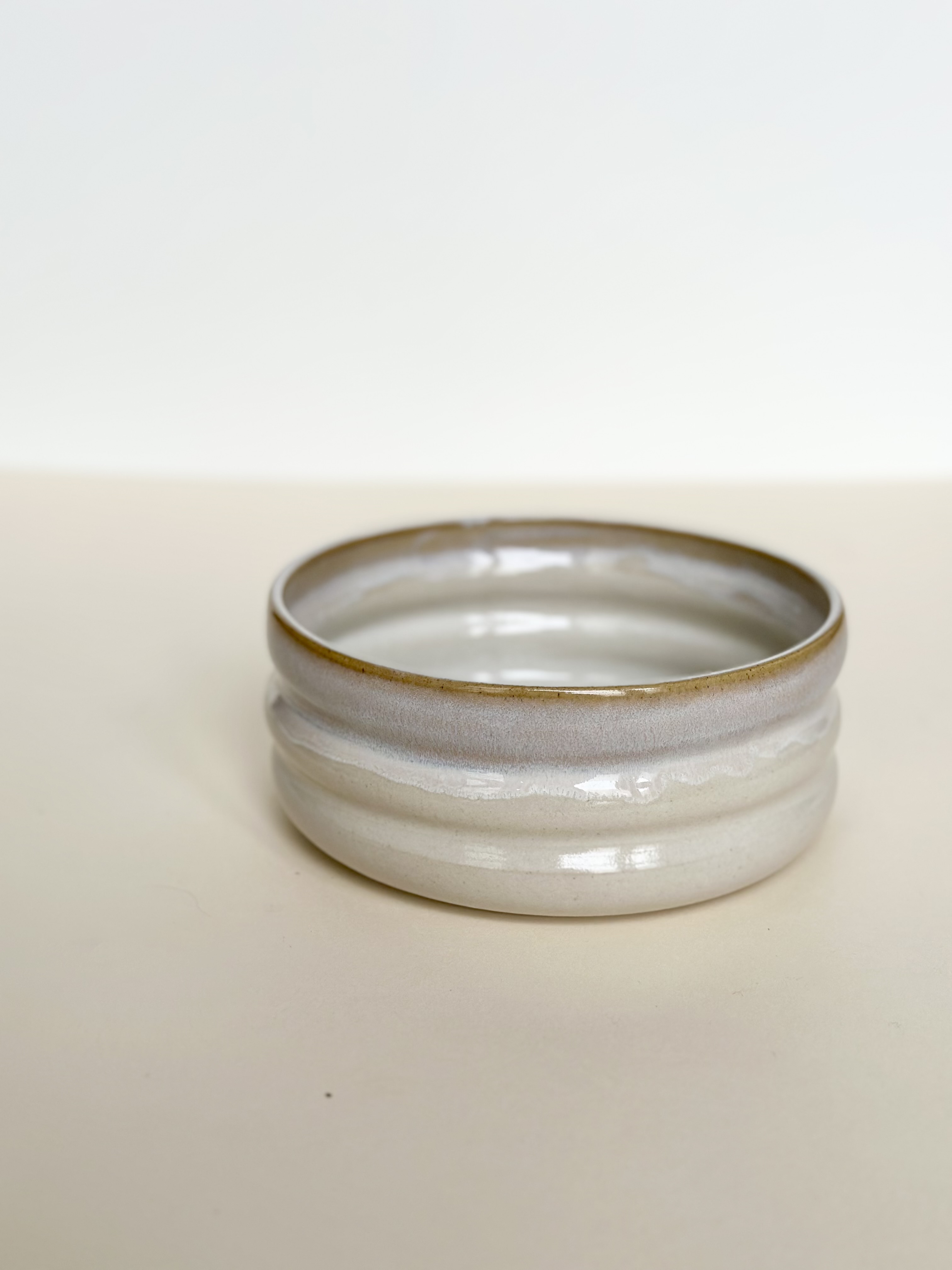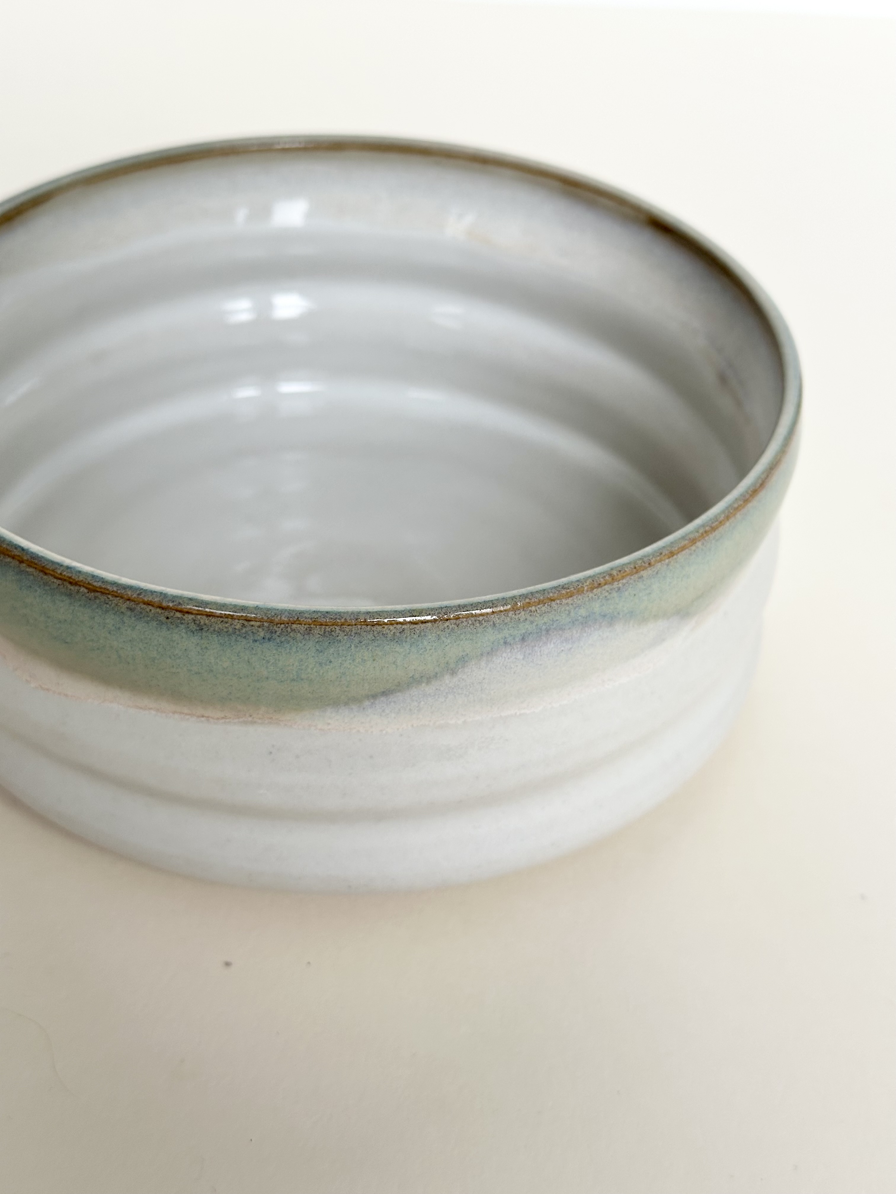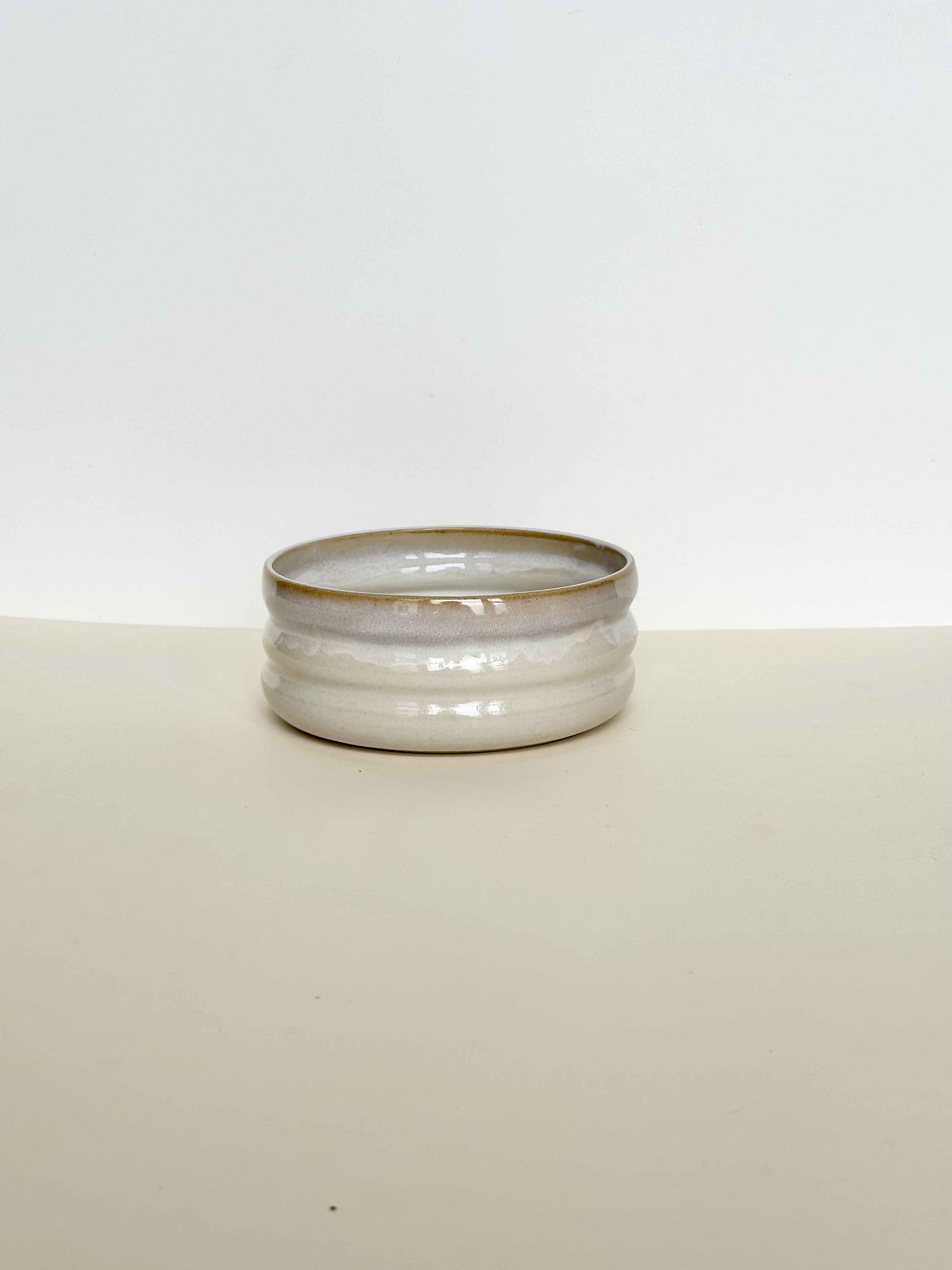 Miska o miękkiej, zaokrąglonej formie. Charakterystyczne „brzuszki” powstają podczas toczenia na kole i nadają naczyniu spokojny, rytmiczny kształt. Pomieści na prawdę sporo jedzenia, a jednocześnie pozostaje zgrabna w proporcjach.