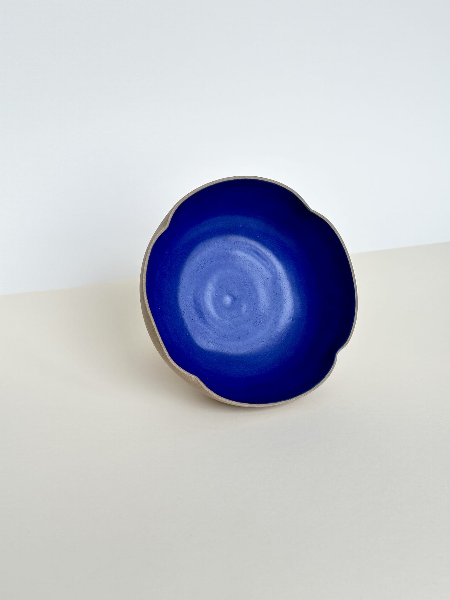 Wewnątrz szkliwiona kobaltowym, satynowym szkliwem. Brzegi są lekko pozaginane i miska kształtem przypomina kwiat.