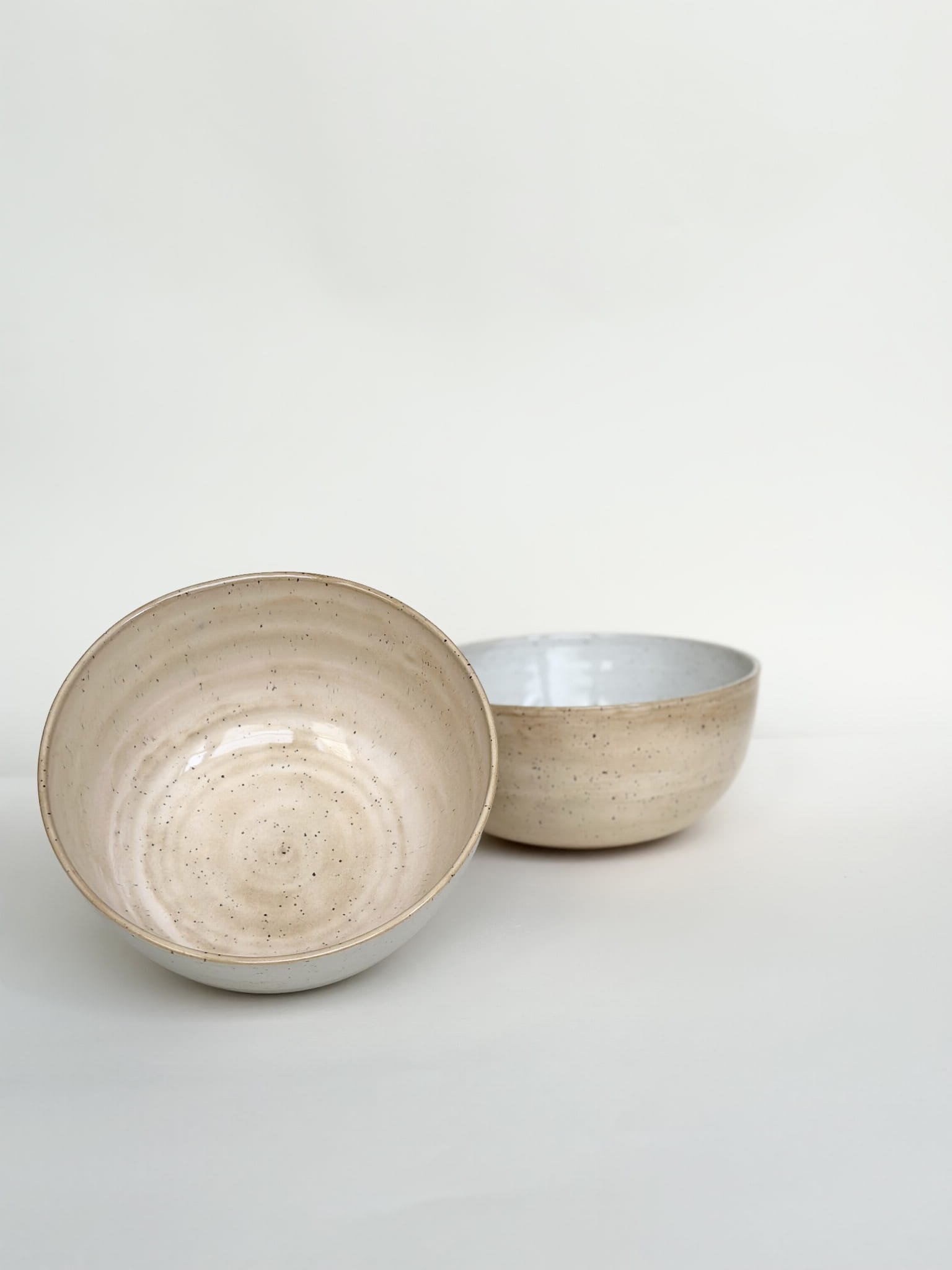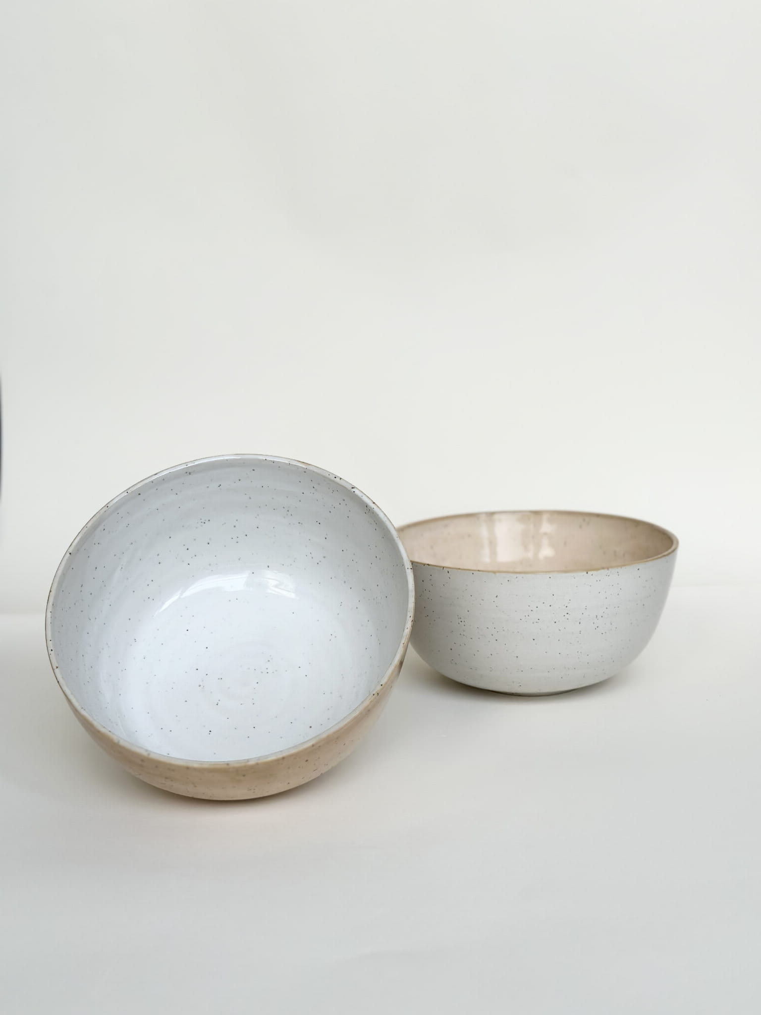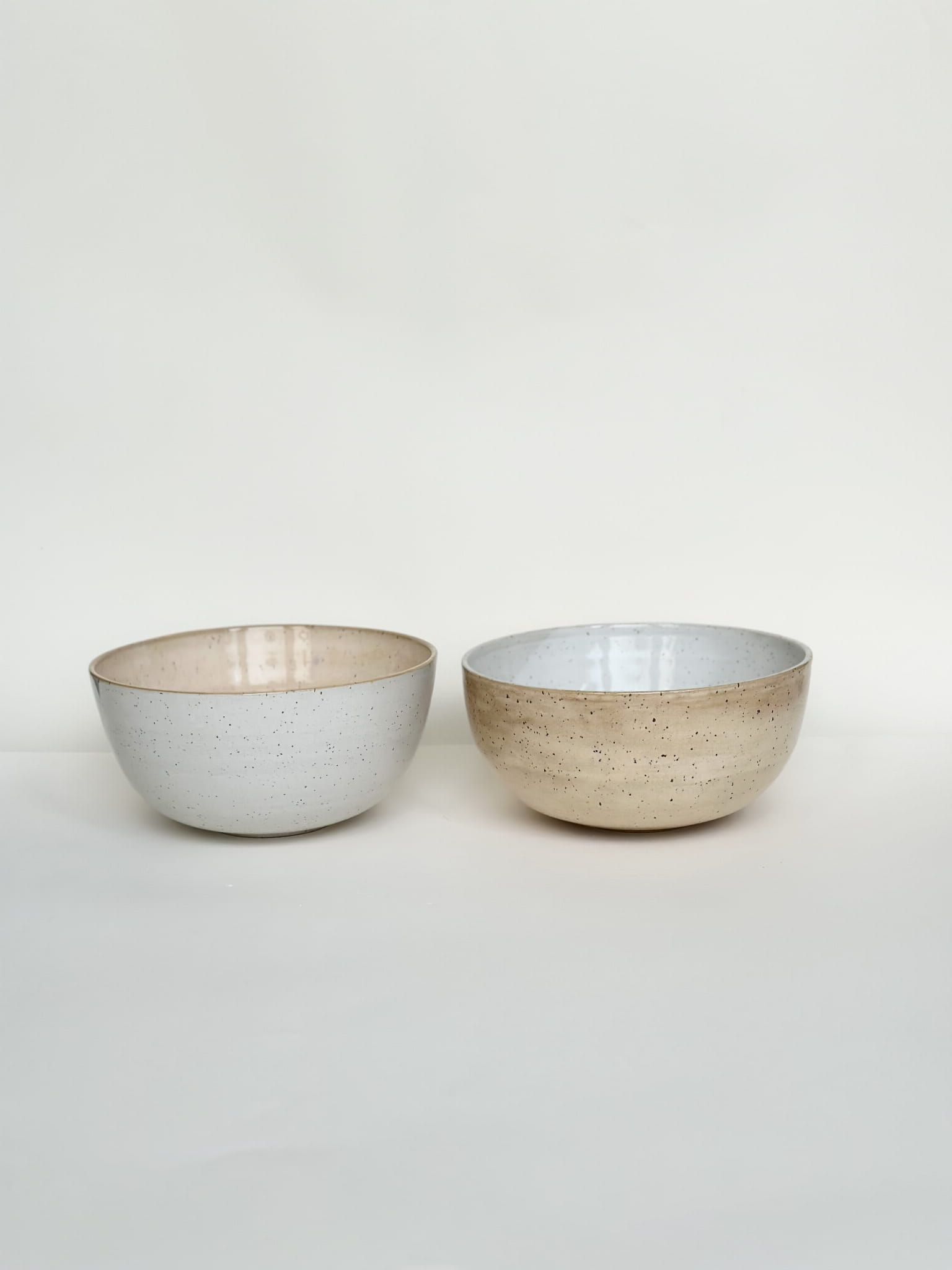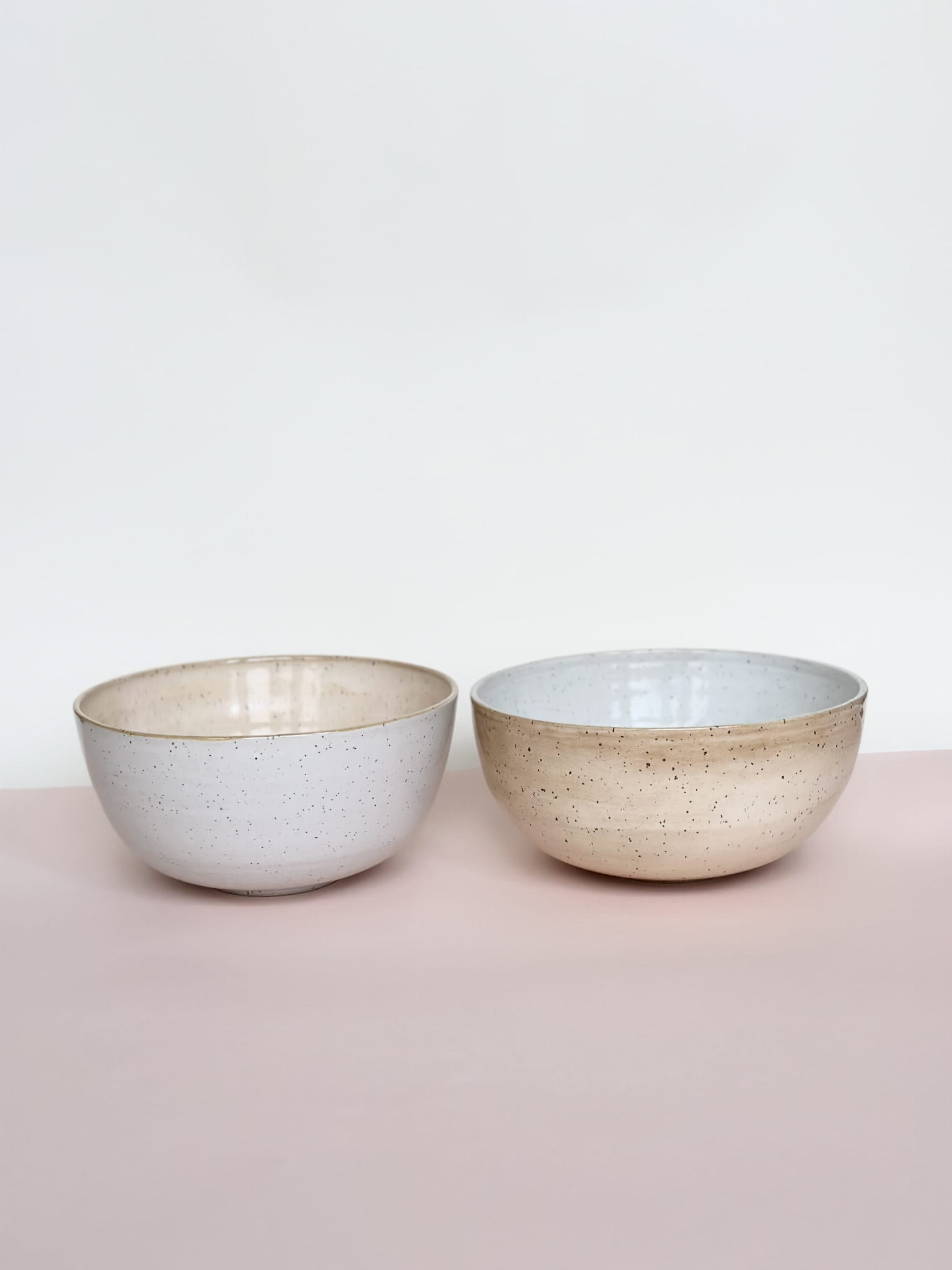jedna misa morelowym wewnątrz, białym na zewnątrz, druga odwrotnie ;)